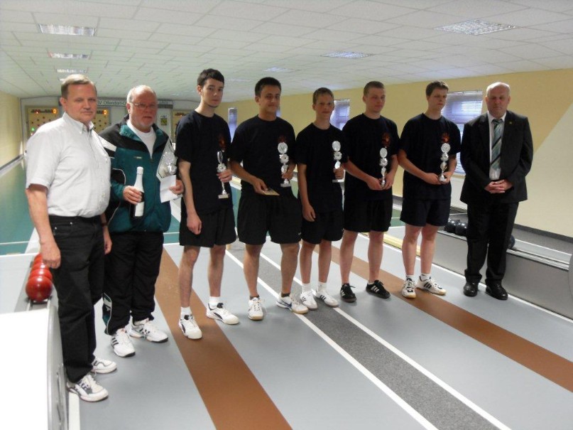 Ehrung Deutschermannschaftsmeister U18 und Übungsleiter Jürgen Baß durch Präsident KV-Sachsen Reiner Mönnich (rechts) und Frank Große Vorsitzender KKV-Bautzen Spieler 3. von links : Manuel Baß, Sebastian Käfer, Marc Moldenhawer, Niels Pollack, Sören Krönert